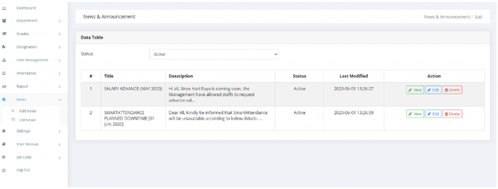 Smart Attendance available on web based
